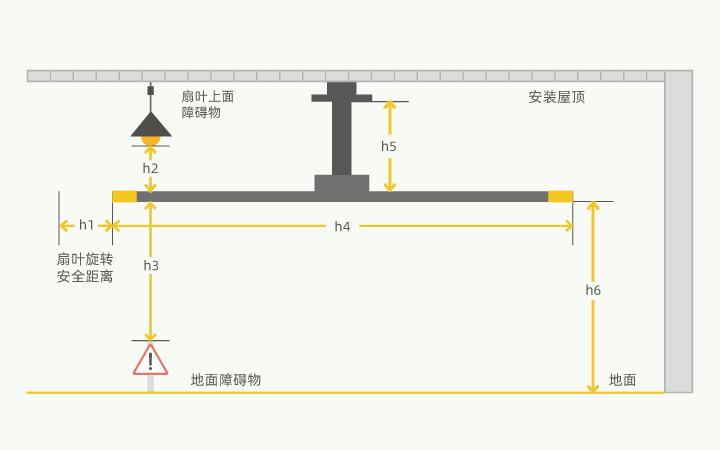 H1扇叶旋转安全距离 | h1 ≥ 0.2 米 |